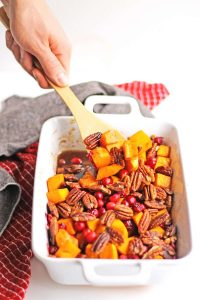 Maple Cinnamon Butternut Squash with Cranberries & Pecans, recipe right here.