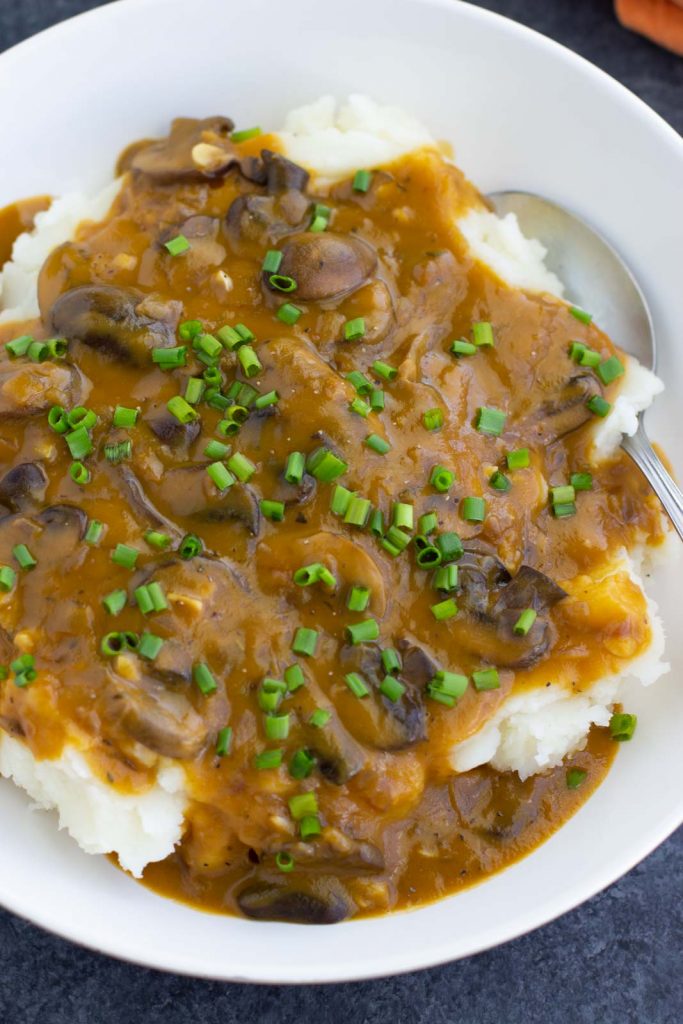 Savory Mushroom Gravy with Mashed Potatoes, recipe right here.